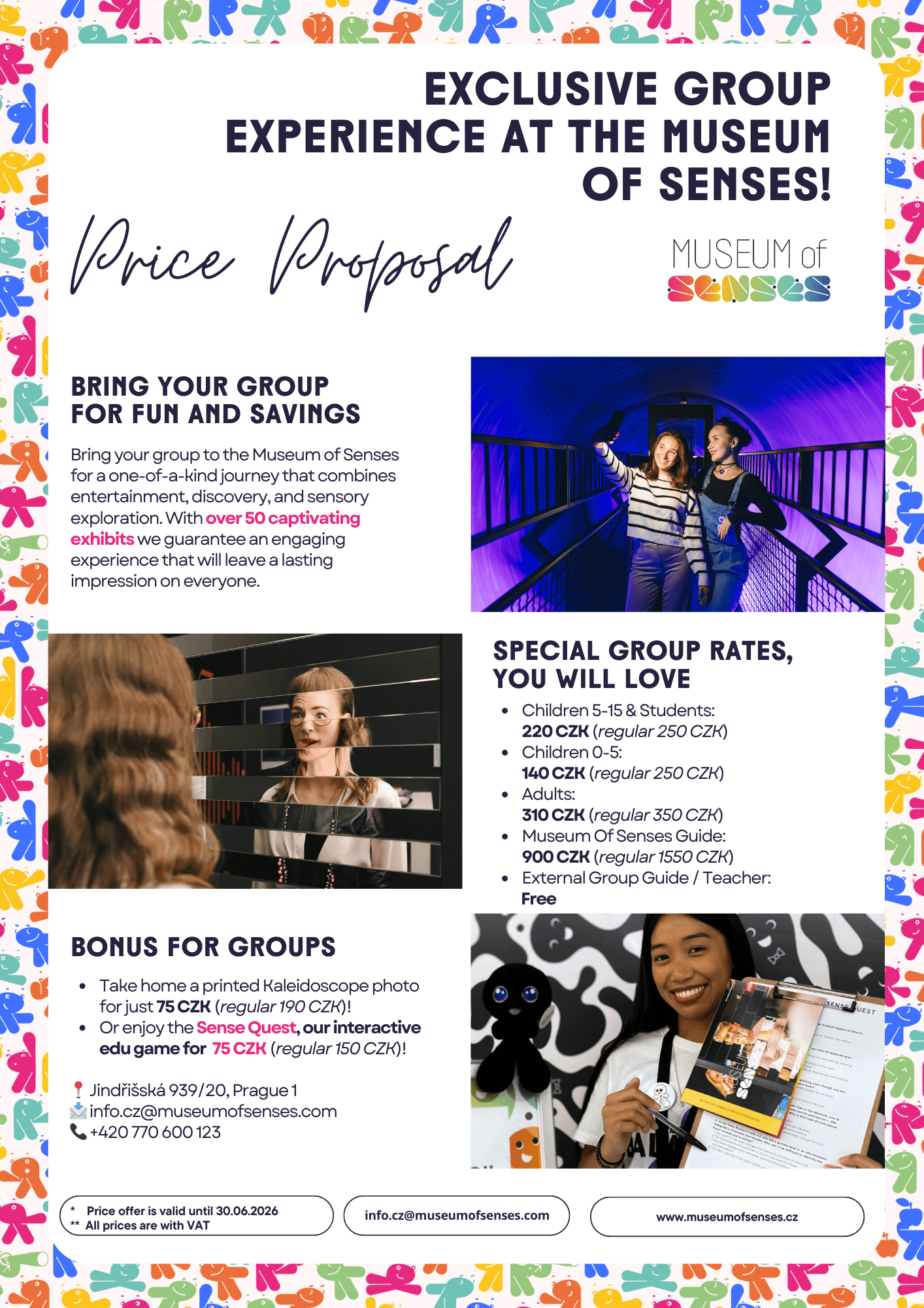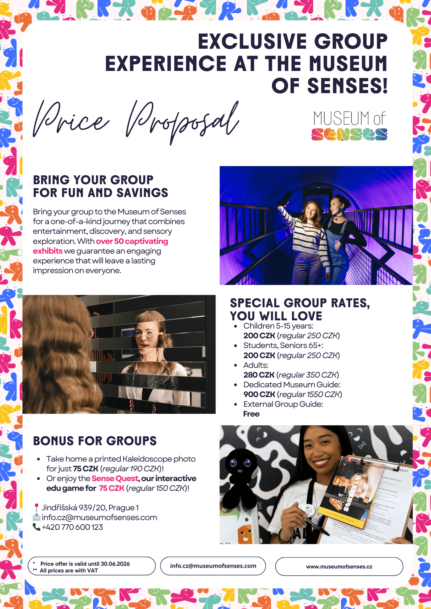 Partner with us to create an experience that exceeds expectations. Contact us at info.cz@museumofsenses.com for more details and bookings.